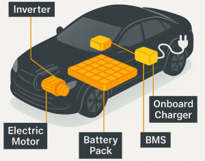 اینورتر در خودرو برقی نقش به سزایی در کاهش زمان شارژ , این خودرو به عهده دارد . استاندارد 800v در ماشینهای برقی برپایه
